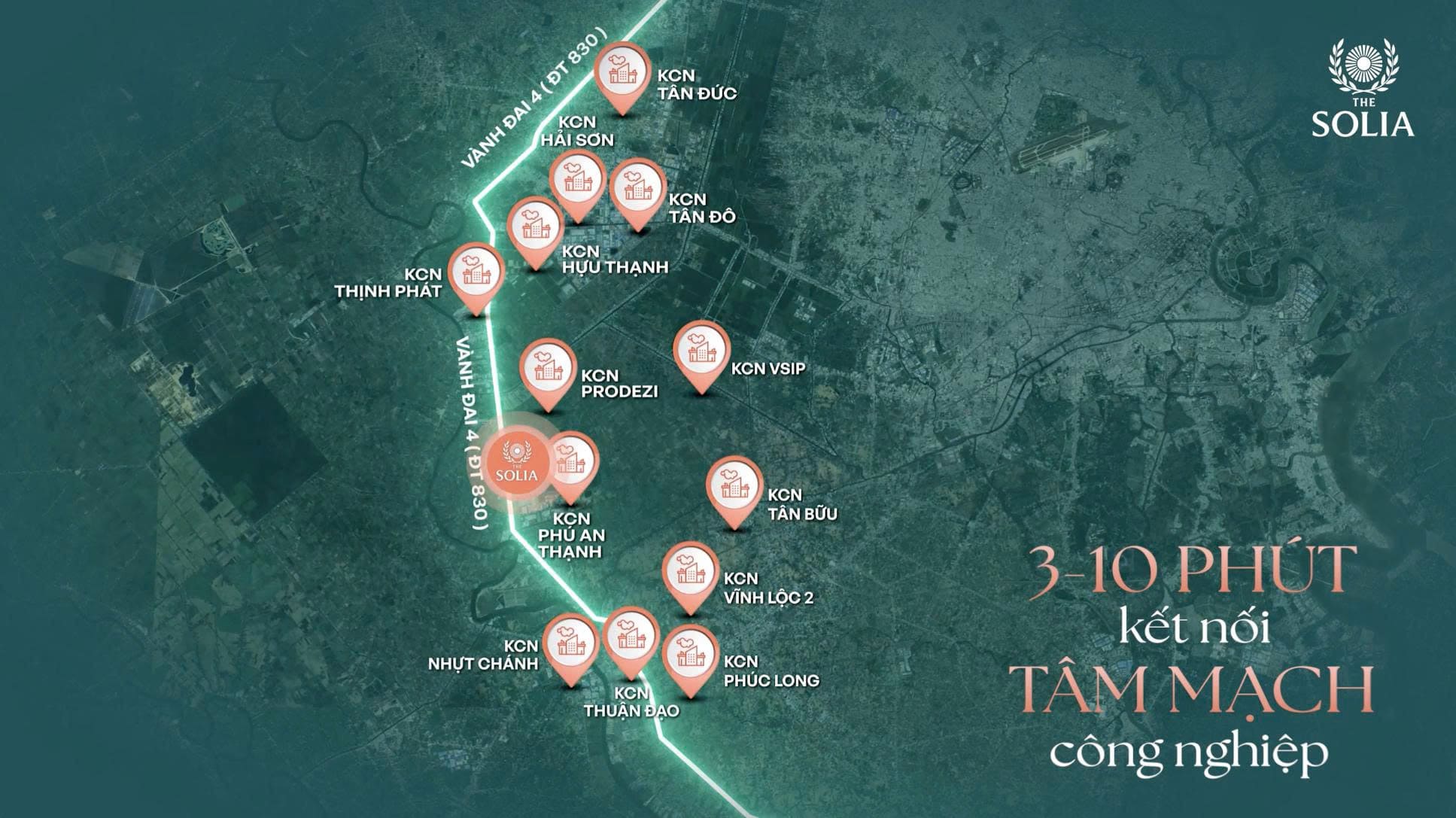 The Solia sở hữu vị trí trung tâm Bến Lức, nằm gần các tuyến giao thông quan trọng như: